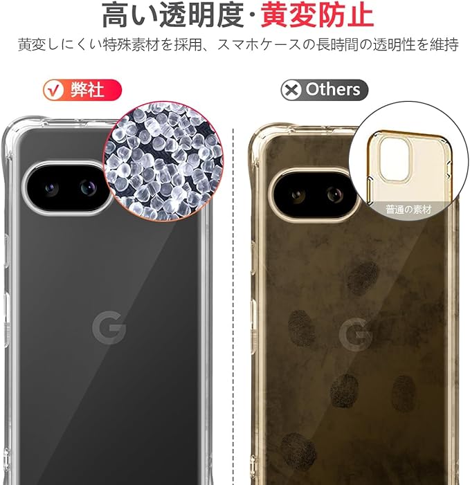 日光や蛍光灯などから降り注がれる紫外線によって黄色く変色してしまい、スマホ自体の見栄えにも影響が及ぶことはよくあります。対応 ピクセル10a TPUケース 高透明率の高い特殊なTPU素材を持ち、黄ばみも付きにくい。スマホ本体のデザインを邪魔しない高い透明度を長期間維持します。