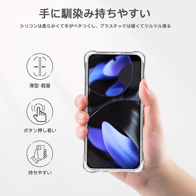 【で高品質な素材】対応 ピクセル10a ケースTPU素材、スマホケースにベストの素材です。スマホケース 内側にマイクロドット加工技術により、密着痕(滲み)の発生を防げ、の熱を効率的に放出できます。対応 グーグルピクセル10a ケースクリア 高透明率の高い特殊なTPU素材を持ち、黄ばみも付きにくい。透明な背面とスリムなデザインは、電話の重量を増やさない、スマホ本体の美しさを損なうことはありません。 快適なグリップ、絶妙な職人技、完璧な手触りです。