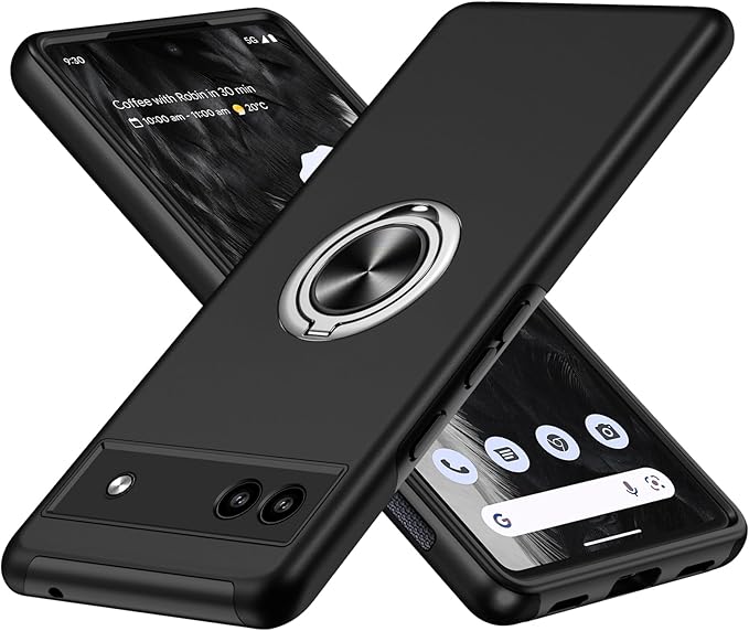 Google Pixel 6A ケース リング付き 耐衝撃 tpu フルプロテクトデザイン スマホケース 軽量 薄型 スタンド機能 全面保護 擦り傷防止 落下防止 米軍MIL規格 車載ホルダー対応 取り出し易い グーグル ピクセル 6a ケース オシャレ 人気 携帯カバー 黒 DA08-10