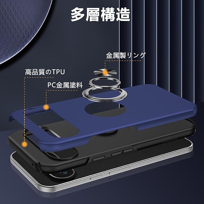Google Pixel 9 Pro 用ケース/Google Pixel 9 用ケース リング付き 耐衝撃 tpu フルプロテクトデザイン スマホケース 軽量 薄型 スタンド機能 全面保護 擦り傷防止 落下防止 米軍MIL規格 車載ホルダー対応 取り出し易い グーグル ピクセル 9pro/9 用ケース オシャレ 人気 携帯カバー 青 DA08-50