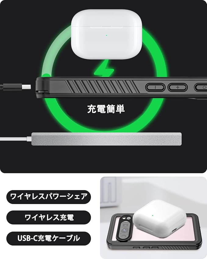 【対応機種】For Google Pixel 9 Pro(グーグル ピクセル 9 プロ)専用防水ケースです。ご注意:Pixel 9、Pixel 9 Pro XL、Pixel 9 Pro Foldと交換性はありません。お手元の機種をご確認の上、ご注文いただきますようお願いします。取り扱いやすくGoogle Pixel 9 Proにピッタリフィットできる見栄えも保護力も両立させた防水ケースです。水、埃、雪、砂、汚れなどからグーグル ピクセル 9 プロを守るので、アウトドア活動、温泉、海水浴場、釣りなどに対応できます。特に仕事柄で高所の作業、水によく接触する作業などおすすめです。