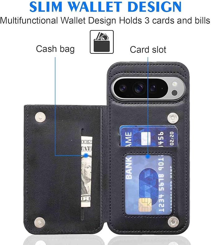【Geshh】Pixel 10/10 Pro レザーケース(ブラック)耐衝撃 財布型カバー カード収納 横置きスタンド機能 開閉式 ストラップ付き 薄型レザーケース 対応 グーグル ピクセル10 pixel 10/10 pro BLACK