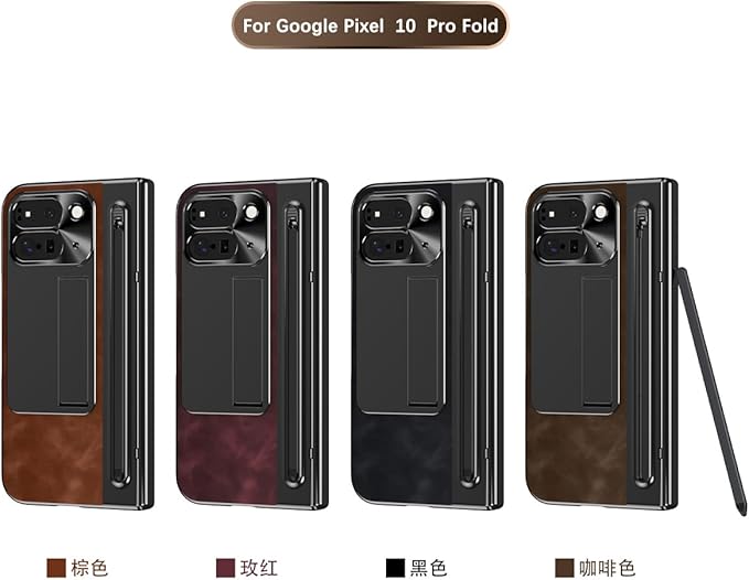 GG Pxl 10 Pro Fold / 9 Pro Fold専用 レザー折り畳みケース ジャズレトロ ナパ 強化ガラス製外画面保護フィルム スタイラスペン収納 金属カメラガード ワイヤレス充電対応 隠蔽式マルチスタンド機能 ヒンジ保護 人気 衝撃吸収 多層構造 全方位保護 軽量 携帯 手帳型 おしゃれ Beautycatchear - 黒