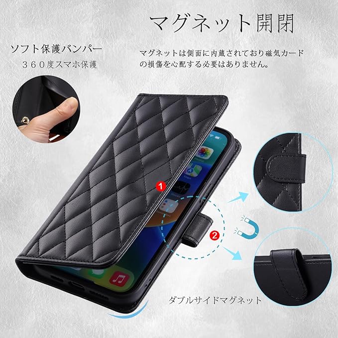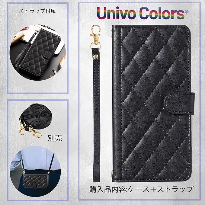 UnivoColors For 手帳型 グーグル ピクセル 10/手帳型 グーグル ピクセル 10 Pro兼用キルティグレザー調 ケース エレガント 高質PU マグネット開閉式 カード収納機能 スタンド機能 液晶全面保護 レンズ保護 ストラップ付属(ブラック)