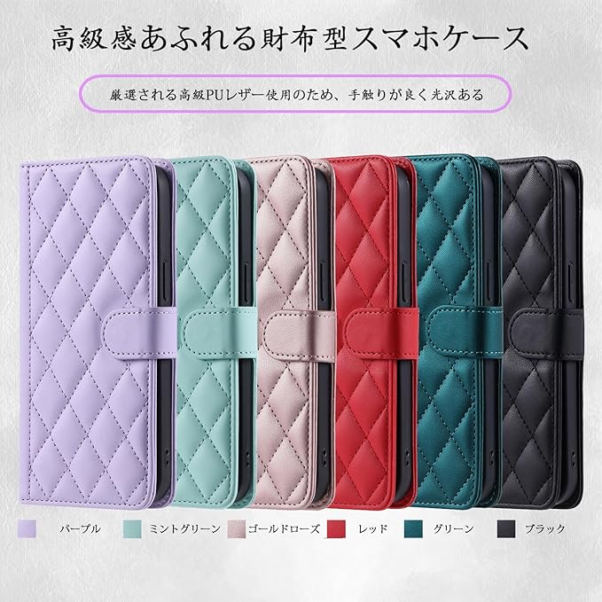 【高品質素材及び設計】メイン素材に高質柔軟のPUとTPU素材を使用しているため、新品特有の嫌な匂いはほとんどありません。手触りが良く、キルティングの設計は控えめでエレガントです。商品はさまざまなニーズに沿った6色展開となっております。 ブラック、ゴールドピンク、パープル、ミントグリーン、グリーン、レッド