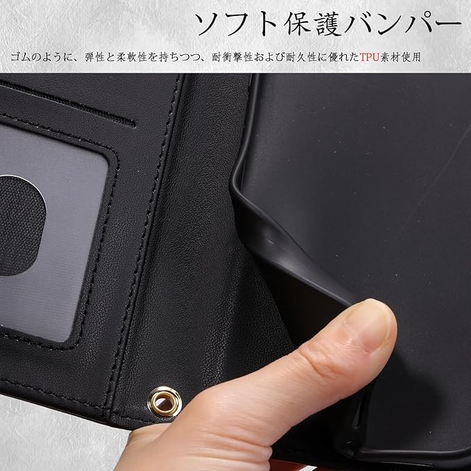 【手帳型ならではの機能が満載】クレジットカード、交通カード、キャッシュなどを収納できると共に、スマホのレンズ及び液晶を全面的に保護できます。商品の内部ケースは柔軟のTPU材料を使用している為、スマホ本体を保護することができます。各機種にピッタリの専門設計なので、ケース装着時も、カメラ、電源ボタン、音量ボタン、イヤホンジャック、コネクタ等がそのまま使用可能です。また、スタンドモードにもなる為、好きな角度で動画鑑賞や読書などを楽しめます。