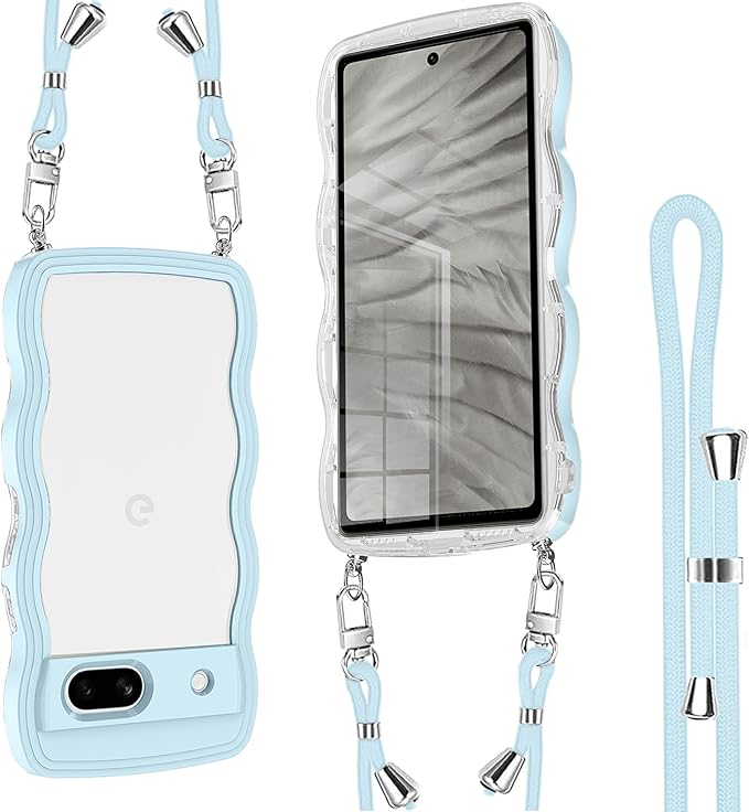 Google Pixel 6a ケース グーグルピクセル6a ケース ショルダー ストラップ1枚付き 紐付き 首掛け 肩がけ 斜め掛け 長さ調整可能 韓国人気 可愛い ウェーブケース ピクセル6a カバ-クリア ストラップホール付き 耐衝撃 シリコン クリア 純透明TPU バンパー 黄変防止 PC スマホケース ワイヤレス充電対応 pixel 6a・ピクセル6aブルー