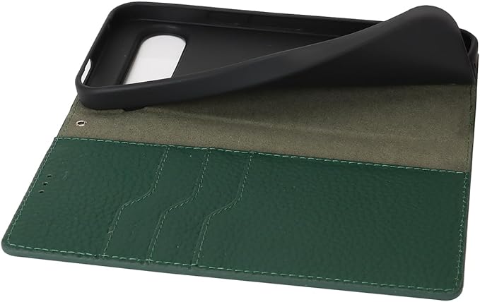 【素材】: シンプルさと高級感を兼ね備えたデザイン, 外殻は牛革製品 本革レザーを採用しており, 内側はスマートフォンにフィットし、隙間なくそれを保護するソフトTPUシリコーン材料で作られています。