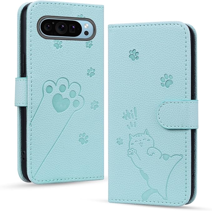 用の Google Pixel 10/10 Pro ケース 手帳型 グーグル ピクセル9 スマホケース 財布型 適用 グーグルPixel9プロ 携帯カバー case 幸せな子猫 ぐーくるぴくせる10 携帯ケース PUレザー 向け Google ピクセル9 ケース手帳型 人気 上質 かわいい 猫の足模様 マグネット式 カード収納 スタンド機能 全面保護 耐衝撃 (ブルー)