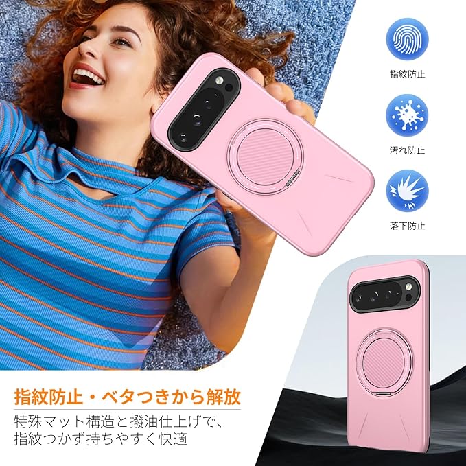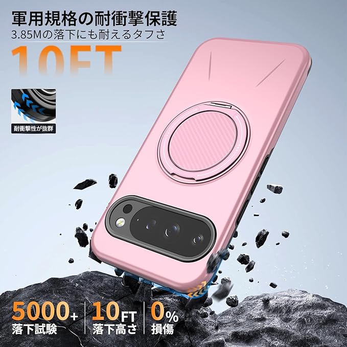 対応 Google Pixel 10/Pixel 10 Pro 用の ケース magsafe対応 360 回転スタンド 耐衝撃 米軍MIL規格 強磁力 リング付き ワイヤレス充電対応 10/10 Pro 用 カバー 指紋防止 レンズ保護 ピンク 525-pix10-06