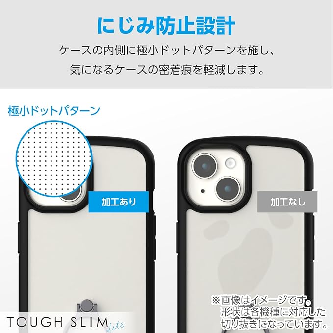 ■全周に配置した独自設計のエアークッションが衝撃を吸収し、背面には高硬度のポリカーボネートを採用した、TOUGH SLIM LITEリング付きケースです。