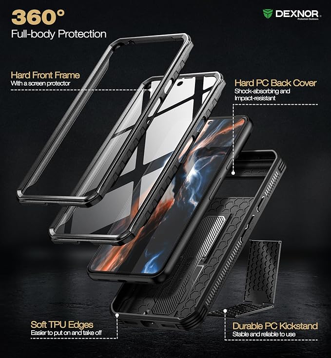 Dexnor Google Pixel 8用 全面保護ケース【二重フロントフレーム&キックスタンド】バンパーショック技術採用 耐落下 耐衝撃 頑丈バンパーケース(ブラック)