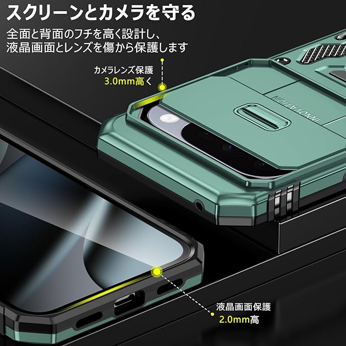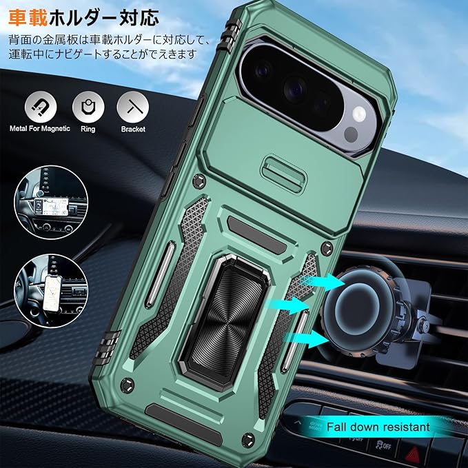 PNEWQNE 対応Google Pixel 10 Pro XL 用のケース リング付き 衝撃吸収 耐衝撃 スタンド機能 米軍MIL規格 グーグル ピクセル10 pro xl 用のケース 全面保護 360 回転 滑り落ちにくい 人気 おしゃれ 携帯カバー ライトグリーン WY100-37