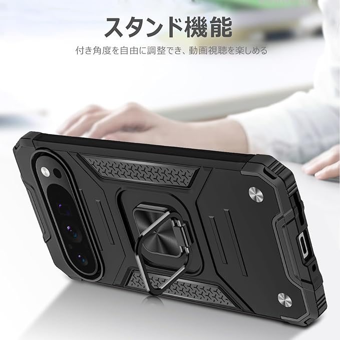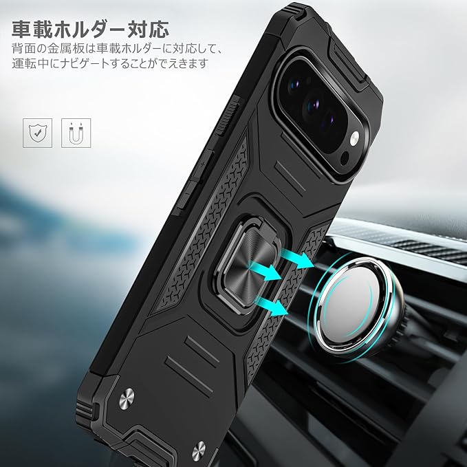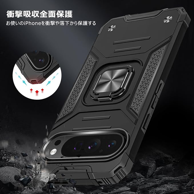 Google Pixel 9 Pro/Pixel 9 用のケース リング 衝撃吸収 耐衝撃 TPU+PCバンパー 二重構造 米軍MIL規格 全面保護 滑り防止 車載ホルダー対応 擦り傷防止 滑り止め 軽量 薄型 グーグル ピクセル 9/9 pro 用のカバー 6.3インチ 指紋防止 耐久 おしゃれ 人気 携帯カバー 黒 MZ64-156