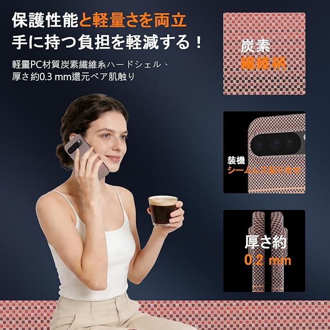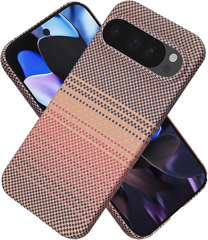 【Moilyo】Google Pixel 9/Pixel 9 Pro用 ケース アラミド繊維製 極薄・軽量型 耐衝撃 グーグル ピクセル9/ピクセル9 Pro 用 スマホカバー 指紋防止 カーボン調 耐久 全面保護ケース pixel9/9proカバー(Sunset Gold)