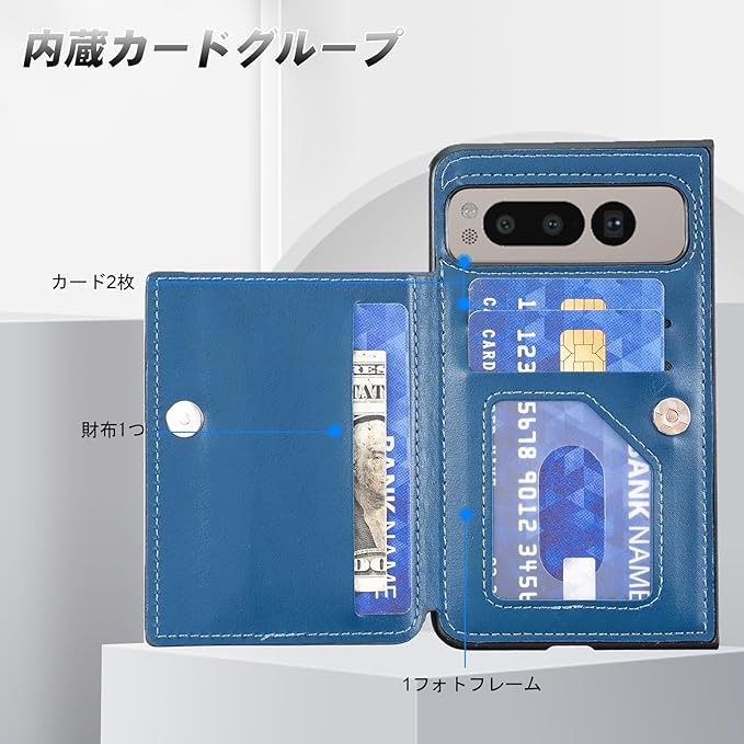【 Antimam 】背面カード 手帳型ケース 対応 Google Pixel fold スマホバックカバー ( ネイビーブルー )手作り お洒落シンプル 軽量 耐久性 カード収納 スタンド機能付き 財布型 落下防止 グーグル ピクセル フォールド スマホ ケースPixel fold 5g BLUE