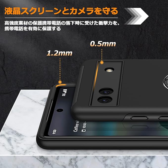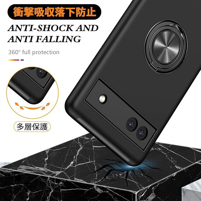 対応 Google Pixel 7A 用の ケース リング 耐衝撃 米軍MIL規格取得 TPU+PC 衝撃吸収 カバー レンズ保護 リングつき 指紋防止 360 回転 車載ホルダー対応 スタンド機能 防塵 薄型 落下防止 擦り傷防止 携帯電話カバー 黒C85-APixel7a-03