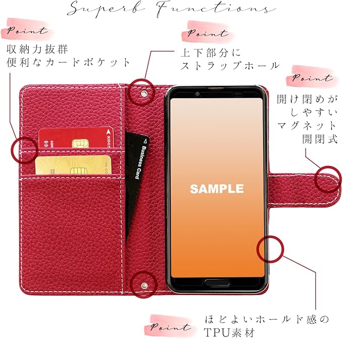 ◎手帳部分と内側ケース部分は接着しておりますが、強くめくったりひっぱると剥がれる場合がございます。内側のケースは黒TPUを使用し、本体をカバーします。電源ボタンや音量ボタンなどは、黒TPUケースの上から押す仕様となっております。カメラ部分などは機種に合わせた開口部が開いております。