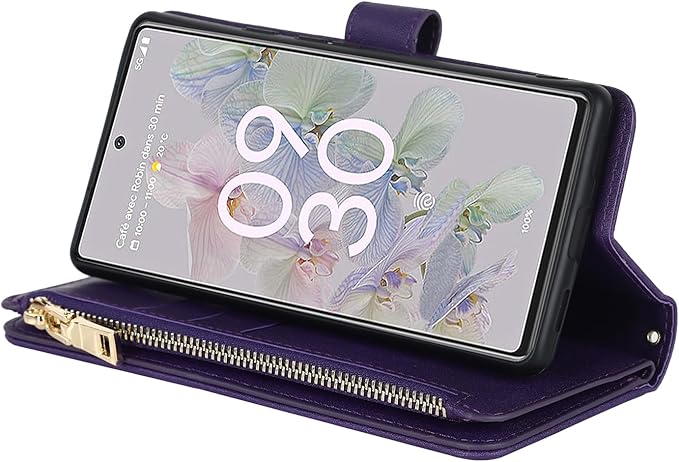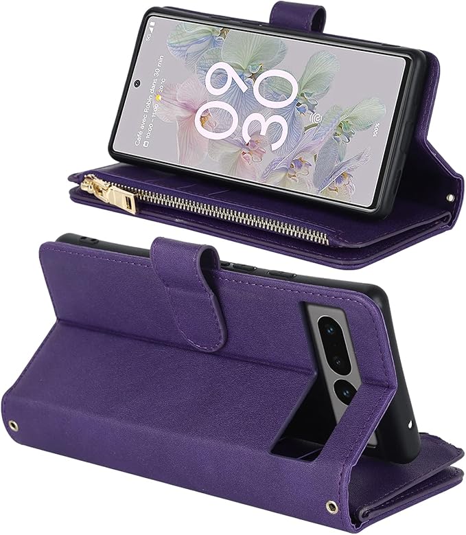 Eastwave for Google Pixel 7 Pro ケース for Pixel7 Pro 縄掛けケース 手帳型 Pixel 7pro 財布型 ICカード コインポケット ストラップ付き カード 収納 小銭入れ ファスナーポケット付き PUレザー 6色 パープル