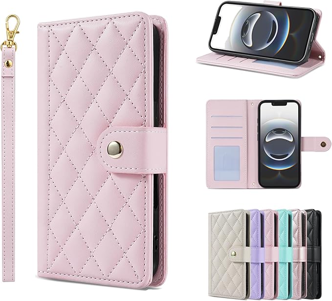 用のGoogle Pixel 9/ 9Pro ケース 手帳型 財布型 マグネット開閉式 カード 3 枚収納&スタンド機能付き 画面とレンズの全面保護 PU レザー 菱形デザイン (ストラップ付属) (ピンク)