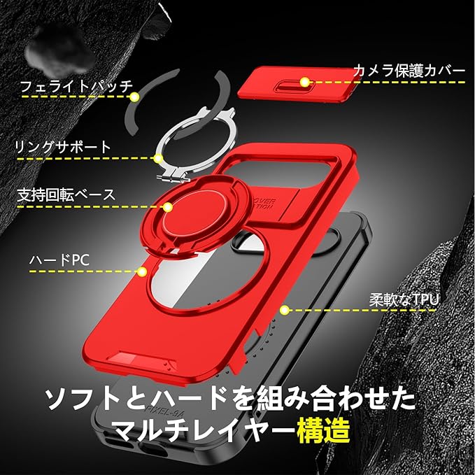 【磁吸機能付き】:リングは鉄片の材質です、磁性アクセサリー(車載スタンド・壁掛け等)と簡単吸着,生活をより便利にする;例えば,磁気吸引車載スタンドに簡単に吸着でき、運転中にナビゲーション情報を見やすくすることができます(注意:①今回の購入はケースのみで、車載などはありません;②本製品は無線充電に対応していません)