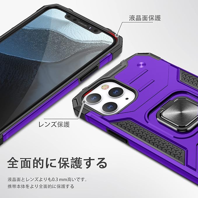 Google Pixel 7 Pro ケース リング付き 米国軍事MIL標準取得 耐衝撃 落下防止 スタンド機能 PC+TPU二重構造 防塵 薄型 軽量 一体型 360度回転 変形防止 全面保護カバー Google Pixel 7 Pro ケース (パープル) MJJ-1051-65-07