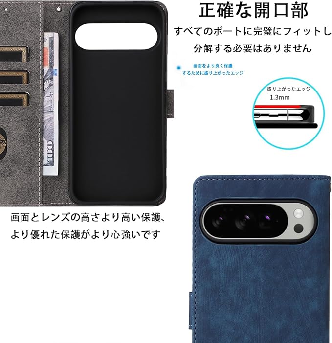 For Google Pixel 10 Pro XL ケース 手帳型 スマホケース 【SHANCHI】(掛绳 x 1) 磁気開閉 耐衝撃 カード収納機能 レンズ保護 合成皮革 + TPUケース 指紋防止 (ブルー)