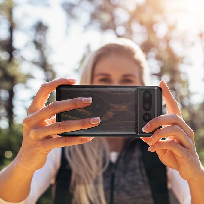 Carveit 木製 ケース 対応 Google Pixel 7Proケース, 合成木+TPUゴム二層構造, グーグル-ピクセル7Pro(6.7インチ)ウッドカバー (黒い木-白木スタイル)