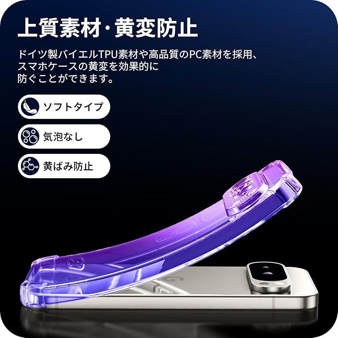 Google Pixel 9 PRO XL 用 ケース クリア 耐衝撃 TPU 透明 Pixel 9PRO XL 対応 スリム 薄型 指紋防止 米軍MIL規格取得 衝撃吸収 滑り止め カメラ保護 ワイヤレス充電対応 おしゃれ 黄変防止 防塵 紫+青 D543-pixel 9pxl-02