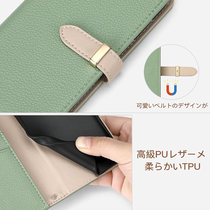 【高級素材、柔らかいTPU ケース手帳型】高品質の肌感PUレザー +柔軟なTPUカバーと組み合わせ、厳選された革を採用しており、目に見える高級感と抜群な、肌のような手触り感い.柔らかいTPUカバーは取り付け・取り外しが簡単で、スマホ本体への損傷の心配ありません