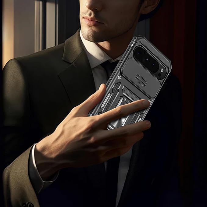 Google Pixel 9 Pro 用ケース/Google Pixel 9 用ケース リング付き 耐衝撃 レンズ保護 TPU+PC 二重構造 バンパー 車載ホルダー対応 360 回転 スタンド機能 スマホケース グーグル ピクセル 9 pro/9用ケース 一体型 携帯カバー 黒 J12-21