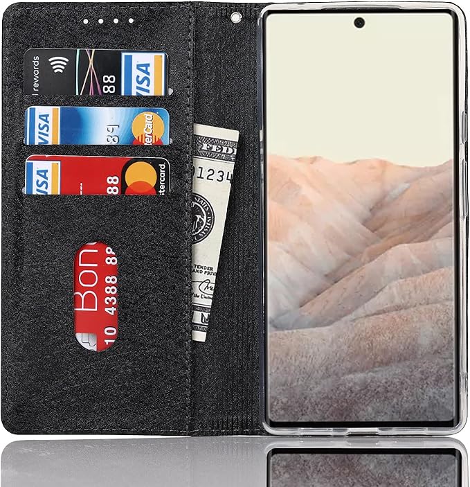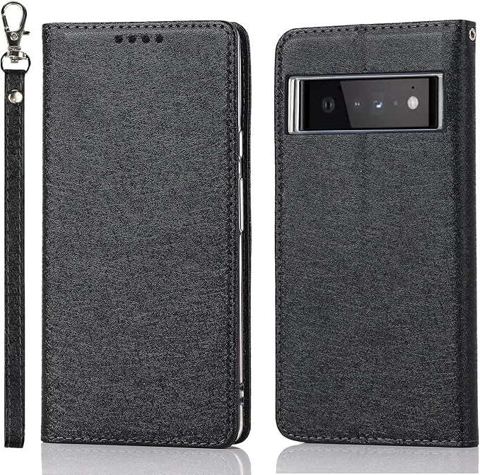 Eastwave for Google Pixel 6 Pro ケース 手帳 財布型 for Google Pixel6 Pro ケースカバー for Pixel 6pro 手帳型ストラップ付き PU皮革 明るい色 内蔵マグネット 携帯カバーカードポケット ブラック