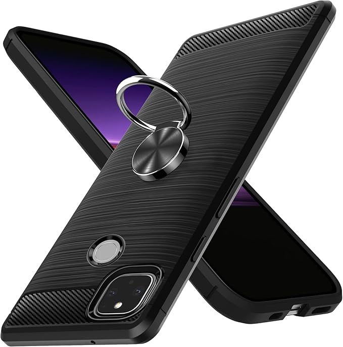 Google Pixel 4a 5G ケースリング付き耐衝撃 Pixel 4a 5Gカバーシリコン tpu スマホケースリング 薄型 柔軟 衝撃吸収 米軍MIL規格取得 保護カバー 黄変防止 指紋防止 軽量 耐久性 専用カバー ブラック 黒R0105-55