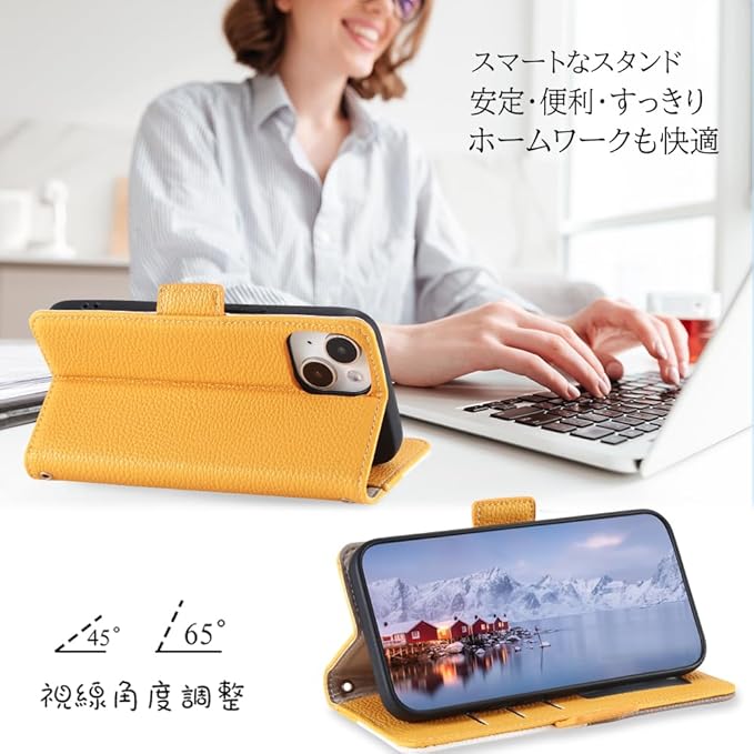 【ストラップ付き】ストラップ付き、持ち運びが便利でアクセサリーとしてもオススメです。さらに、使いやすいために、左上に金具と左下にストラップ穴がついています。好きなストラップをつけられます。【マグネット式】さらに、マグネットは内臓に配置され、磁気カードに影響がほとんどありません。カバーの開閉は便利で片手で操作可能です。 【スタンド機能】スマホ横置きでスタンド機能も付き、好きな角度を調節できて、両手が解放され、通勤・通学などの移動、新幹線や飛行機での長期距離移動など、お好みの角度で動画視聴などを楽しめます。