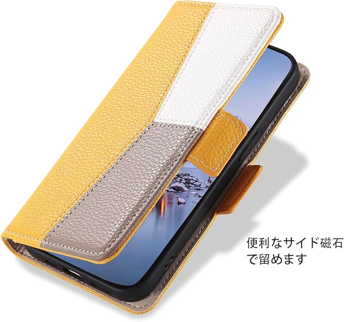 Google Pixel 7A レザーケース 個性的なデザイン シュリンク革 Google Pixel 7A 携帯カバー 財布型 真珠チャーム付き 綺麗 ピクセル7A 手帳型スマホカバー マグネット付き かわいい 上質 グーグルピクセル7A カバーケース 耐衝撃 横置きスタンド 保護ケース スマートフォンケース ソフトカバー 全面保護 便利 カードホルダー イエローとグレー