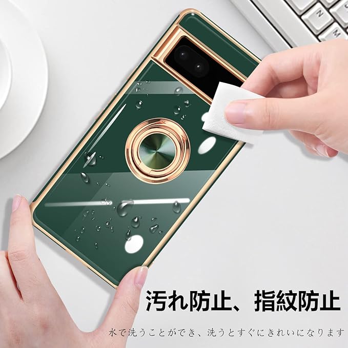 に適合するGoogle Pixel6A 用のケース リング付き グーグル ピクセル 6A 用のリング カバー 耐衝撃 TPU メッキ加工 360 回転 スタンド機能 車載ホルダー ストラップホール付き(ダークグリーン)