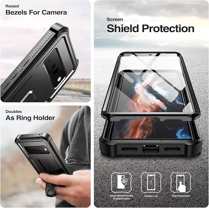 【360 全面防護】 前面・背面を完全にカバーするだけでなく、補強されたコーナーとカメラ・画面周りの盛り上がり加工により、Google Pixel 6 Pro 5Gを落下・割れ・擦り傷からさらに保護します。