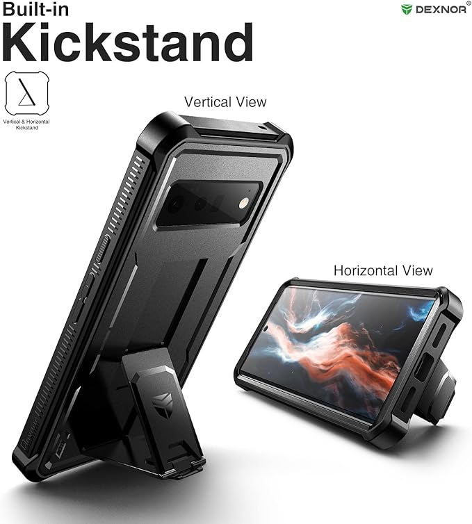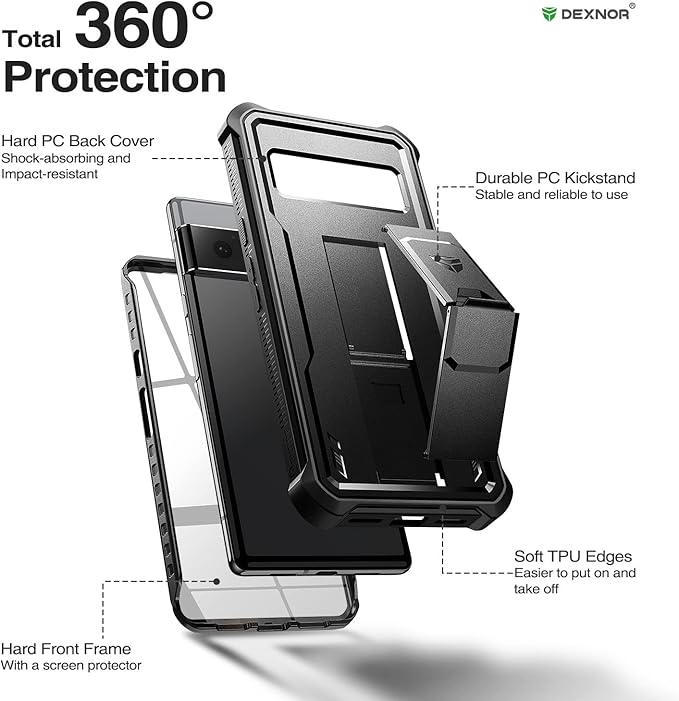 Dexnor Google Pixel 6 Pro 5G用 ケース [内蔵スクリーンプロテクター&キックスタンド] 軍用規格 耐衝撃 強化防護カバー(ブラック)