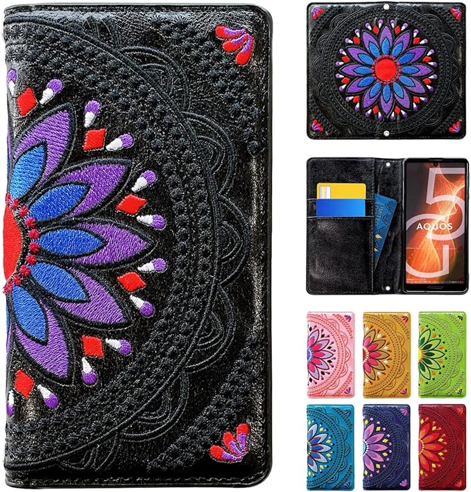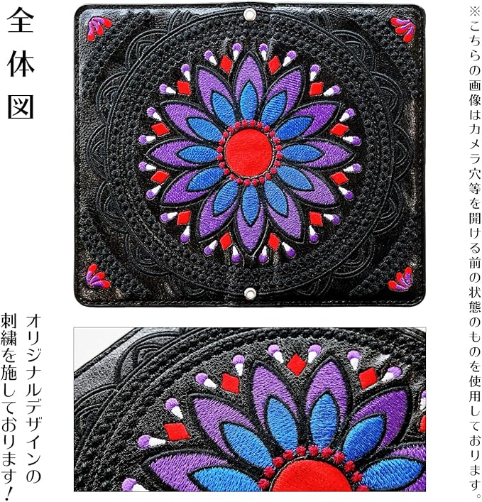 Pixel 8 用 手帳型 ケース カバー Pixel8 Pixel8ケース Pixel8カバー グーグル ピクセル ピクセル8 エスニック 刺繍 ブラック