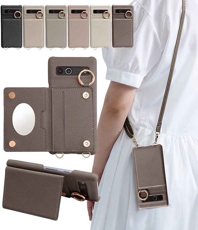 ケース ショルダー Google Pixel 7a 用 カード収納 ミラー付き 薄型 肩掛け 斜め掛け 手帳型 落下防止 マグネット スタンド機能