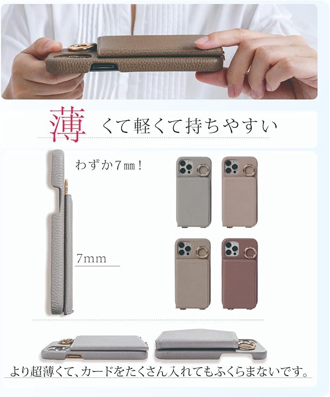 商品特徴◎ケース ショルダー ストラップ付き ◎マグネット止め、開け閉めが便利! ◎3枚カード収納可能。便利な指穴があり、カードの取り出しが簡単。 ◎ケースに鏡付き ◎スタンド機能有り ◎カラビナリング付き、落下防止