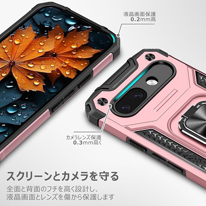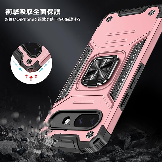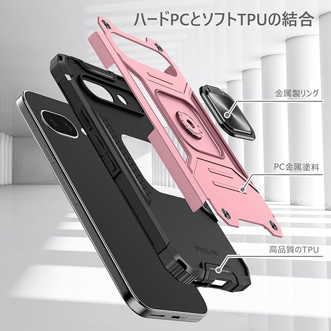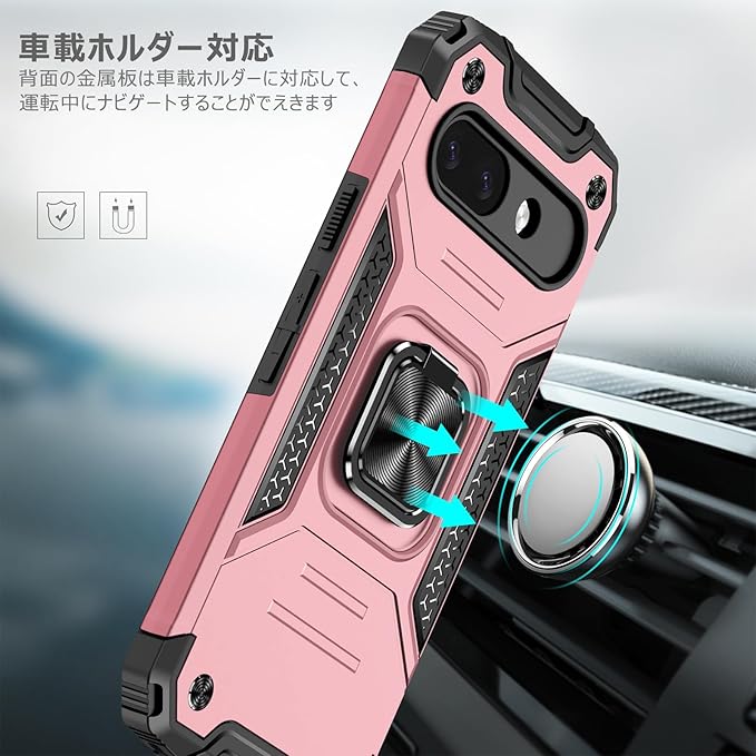 Google Pixel 9A 用ケース リング 衝撃吸収 耐衝撃 TPU+PCバンパー 二重構造 米軍MIL規格 全面保護カバー 滑り防止 車載ホルダー対応 擦り傷防止 滑り止め 軽量 薄型 ピクセル9a 用カバー 6.3インチ 指紋防止 耐久 おしゃれ 人気 携帯カバー ピンク MZ91-66