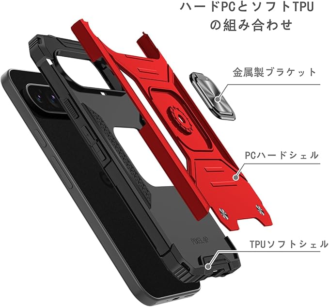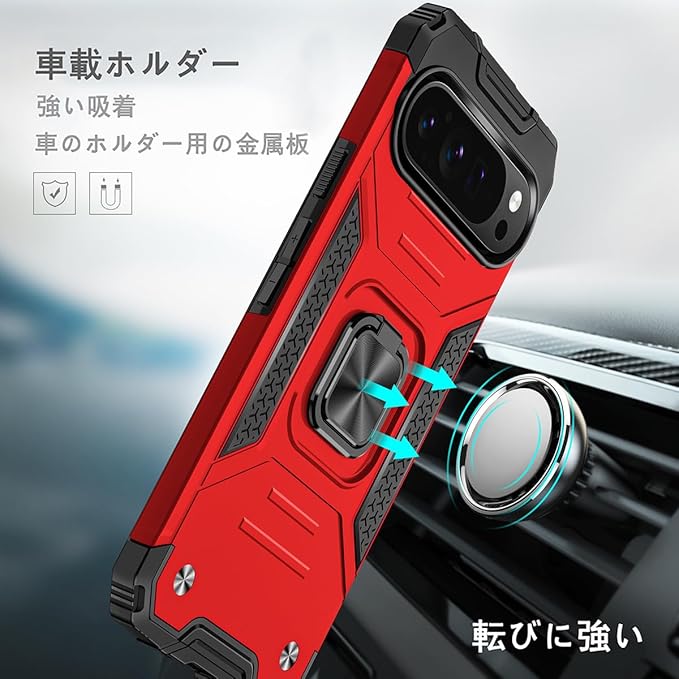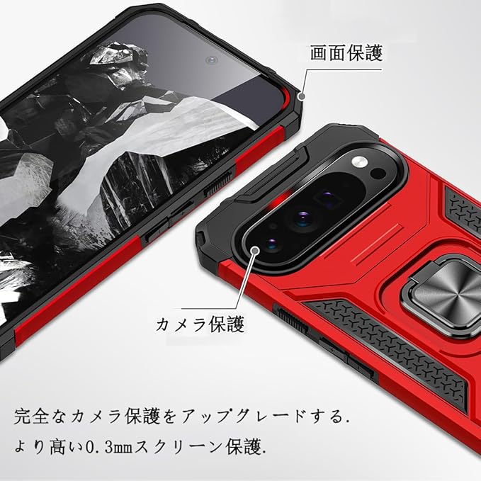 JSCOMYAP Google Pixel 9 / Pixel 9 Pro ケース用, ピクセル9 スマホケース + ピクセル9pro 强化ガラス フィルム,リング スタンド機能 付き 携帯ケース 人気 耐衝撃 横置き機能 Case Cover ぐーくるぴくせる グーグルピクセル 9プロ 背面 カバー(赤)