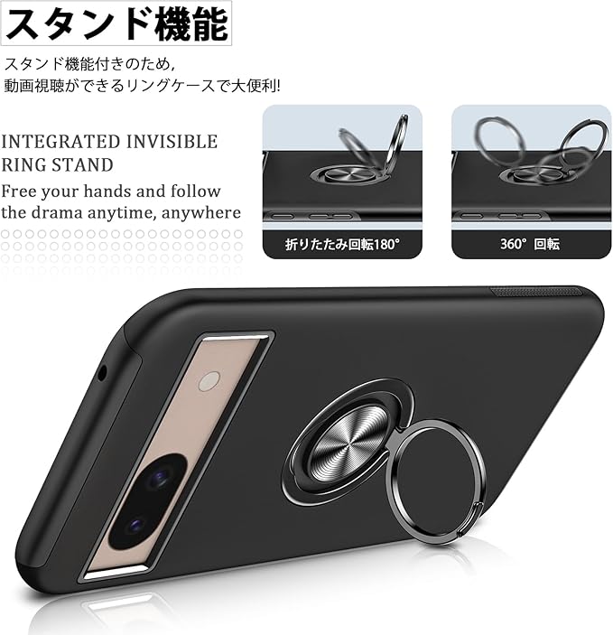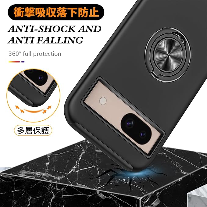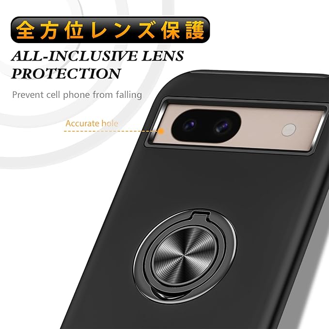 対応 Google Pixel 8 用の ケース リング 耐衝撃 米軍MIL規格取得 TPU+PC 衝撃吸収 カバー レンズ保護 リングつき 指紋防止 360 回転 車載ホルダー対応 スタンド機能 防塵 薄型 落下防止 擦り傷防止携帯電話カバー 黒C85-APixel8-01