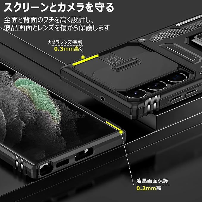 【レンズ保護カバー】撮影時にスライドしてカバーを開けて撮影するので便利です。使用しないときはレンズを覆い、ほこりや傷を防ぐことができます。