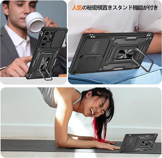 【360度回転式リング付き】360度回転可能、180角度調節可能、片手で携帯を操作でき、滑り止め、強奪、落下などのことを防げます。ケースを横置きにするとスタンド機能になり、持たず動画鑑賞などを楽しむことができます。