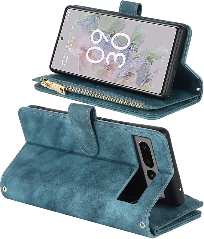 Eastwave for Google Pixel 7 Pro ケース for Pixel7 Pro 縄掛けケース 手帳型 Pixel 7pro 財布型 ICカード コインポケット ストラップ付き カード 収納 小銭入れ ファスナーポケット付き PUレザー 6色 ブルー
