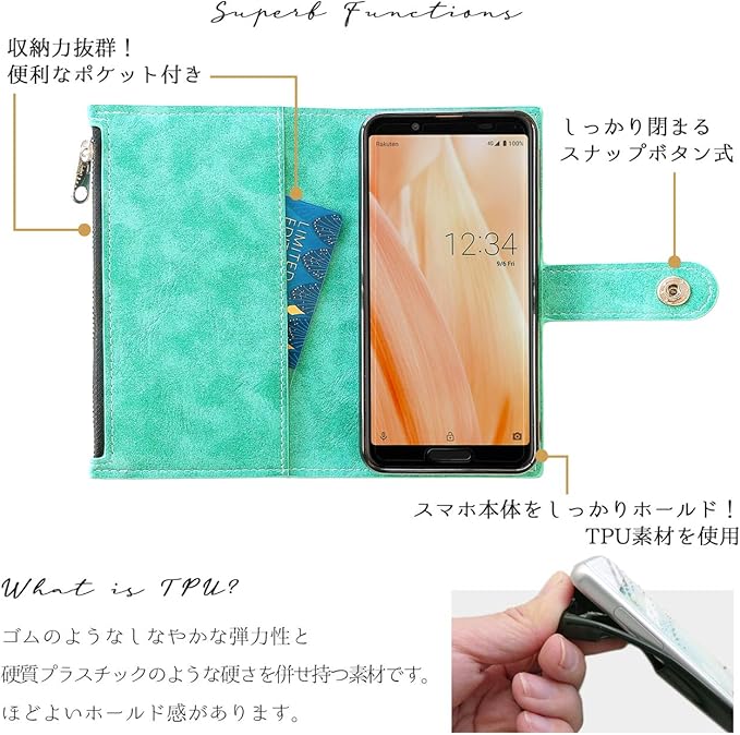 Google pixel 9 Pro 専用 手帳型 ケース カバー pixel9 pixel9pro pixel9ケース pixel9proケース pixel9手帳型ケース pixel9pro手帳型ケース 手帳ケース 手帳型ケース スマホケース チャック付き ターコイズ