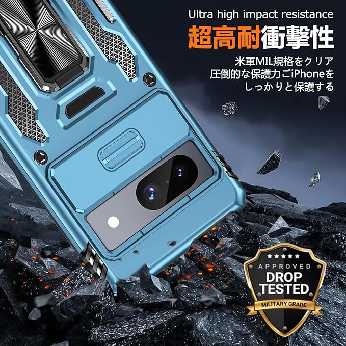 PNEWQNE Google Pixel 7 Pro 兼用ケース リング付き 衝撃吸収 耐衝撃 スタンド機能 米軍MIL規格 グーグル ピクセル 7 pro 兼用ケース 全面保護 360 回転 滑り落ちにくい 人気 おしゃれ 携帯カバー ネイビーブルー WY88-179