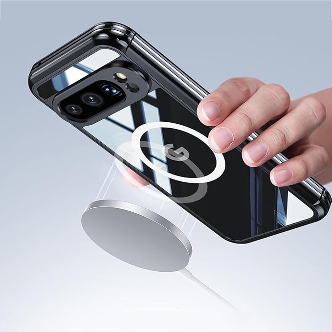 for pixel9 pro ケース マグセーフ対応 クリア 両面ケース かわいい フルボディ頑丈な保護バックハイブリッド 磁気ワイヤレス TPE + PC 内蔵スクリーンプロテクター ピクセル9 用 magsafe対応 おしゃれ 韓国 耐衝撃 シンプル 全面保護 落下防止 ブルー